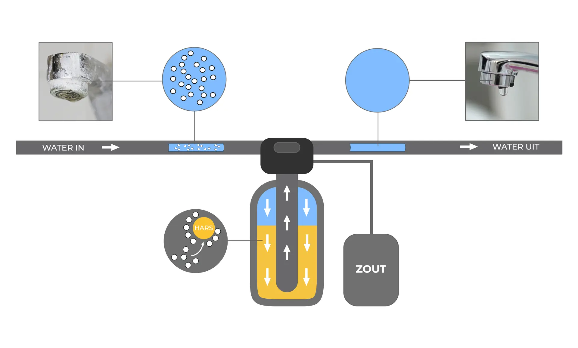It's simple science, done right. Hard UK tap water (loaded with calcium and magnesium) flows through our premium ion-exchange resin bed—infused with sodium ions that swap out the troublemakers. Out comes soft, scale-free water that protects your pipes, appliances, and skin.